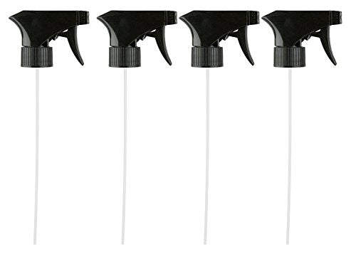 Trigger Sprayers for Bottles - 4 PCS, Great for Essential Oils, and Thin Liquid Solutions. Black with 7.7" Dip Tube and a ON/OFF Nozzle: Fits Bottles with a 28/410 Neck Finish; Most 8 Oz and 16 Oz Boston Round Glass Bottles and Others with the same neck finish.